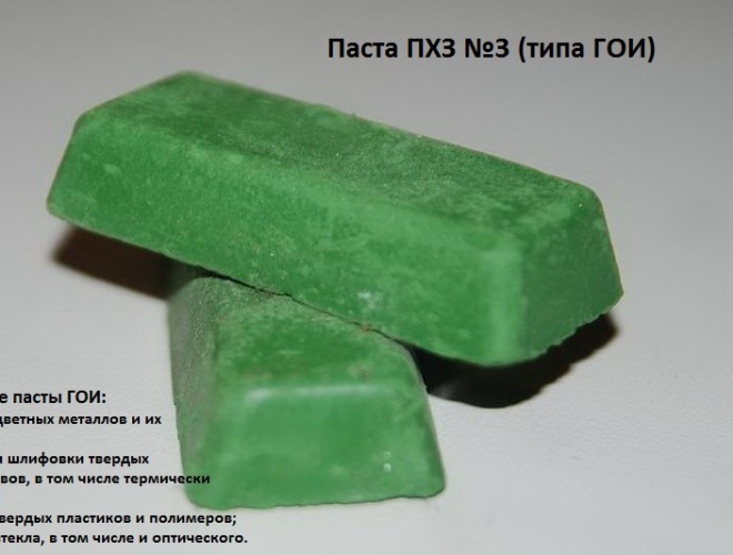 Выпускается различных марок: № 1,2 - для тонкой шлифовки, № 3 – средней шлифовки, № 4 - для грубой шлифовки. Легко наносятся и прочно удерживается на полировочных кругах: хлопчатобумажных, войлочных, бязевых.